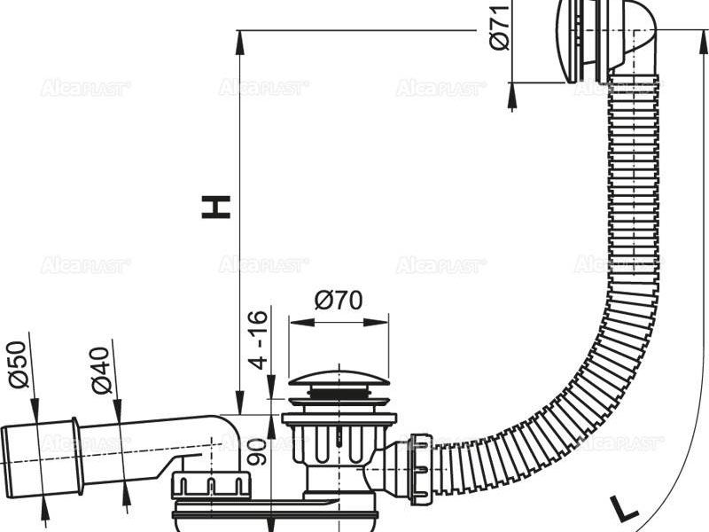 Сифон для ванны "AlcaPlast" A507KM комплект