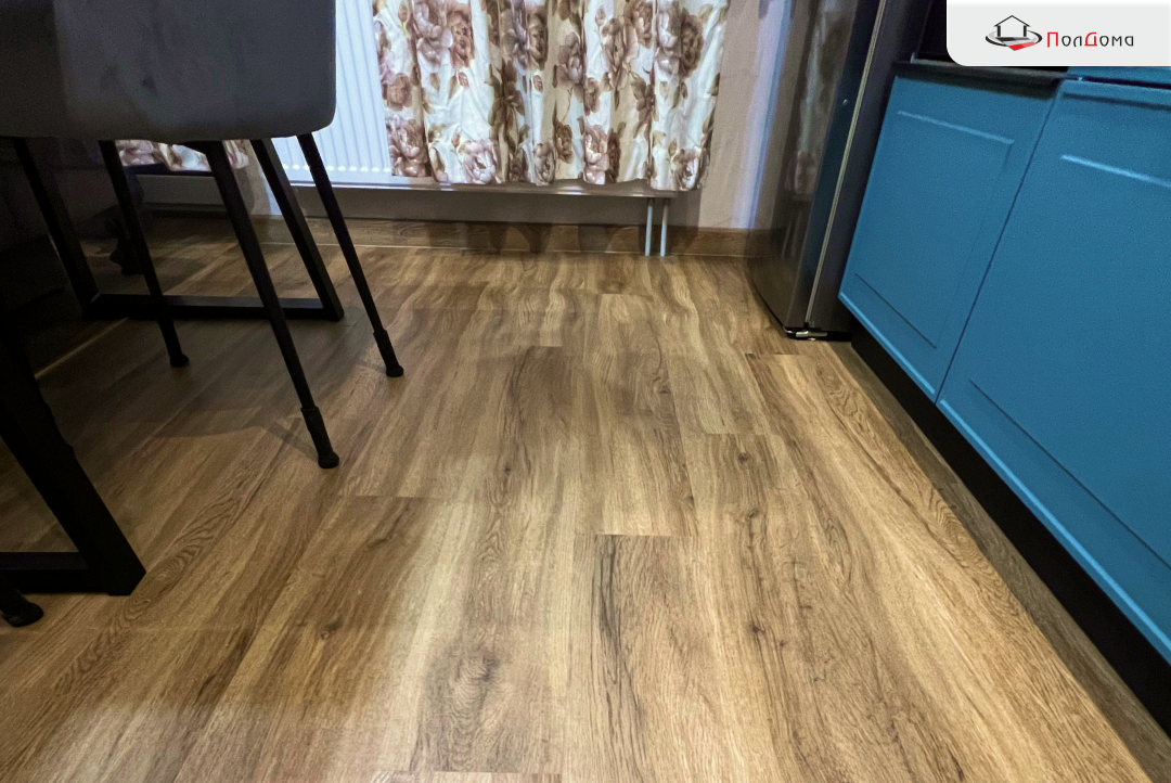 Ремонт прошёл быстро и без хлопот. За счёт грамотной подготовки основания и качественной укладки команда «ПолДома» обеспечила долговечный результат. Клеевая ПВХ-плитка Berry Alloc Spirit Home 30 Gluedown PALMER NATURAL стала отличным выбором для кухни — прочным, практичным и красивым покрытием, которое будет радовать владельцев долгие годы.